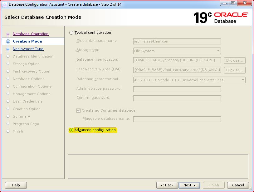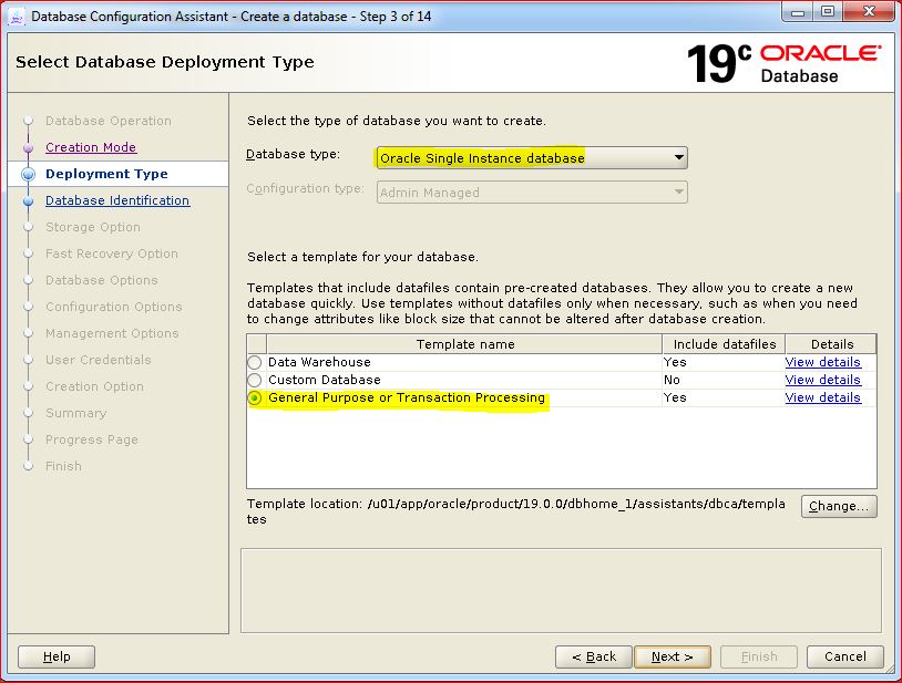 Create Non-CDB Oracle Database 19c on Linux using DBCA (GUI)
