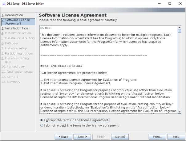 [root@pcs1 server_t]# ls -ltr total 116 drwxr-xr-x. 4 root root 84 Jul 4 2018 nlpack -r-xr-xr-x. 1 bin bin 5642 Jul 4 2018 db2prereqcheck -r-xr-xr-x. 1 bin bin 5798 Jul 4 2018 db2_deinstall -r-xr-xr-x. 1 bin bin 5650 Jul 4 2018 db2setup -r--r--r--. 1 bin bin 41540 Jul 4 2018 db2checkCOL.tar.gz -r-xr-xr-x. 1 bin bin 5632 Jul 4 2018 db2ls -r--r--r--. 1 bin bin 4987 Jul 4 2018 db2checkCOL_readme.txt -r-xr-xr-x. 1 bin bin 5883 Jul 4 2018 db2ckupgrade -r-xr-xr-x. 1 bin bin 5668 Jul 4 2018 db2_install -r-xr-xr-x. 1 bin bin 5686 Jul 4 2018 installFixPack drwxr-xr-x. 10 bin bin 4096 Jul 4 2018 ibm_im drwxr-xr-x. 6 bin bin 4096 Jul 4 2018 db2 [root@pcs1 server_t]# [root@pcs1 server_t]# [root@pcs1 server_t]# ./db2setup Requirement not matched for DB2 database "Server" . Version: "10.5.0.10". Summary of prerequisites that are not met on the current system: DBT3514W The db2prereqcheck utility failed to find the following 32-bit library file: "/lib/libpam.so*". DBT3514W The db2prereqcheck utility failed to find the following 32-bit library file: "libstdc++.so.6". DBI1190I db2setup is preparing the DB2 Setup wizard which will guide you through the program setup process. Please wait.![]()