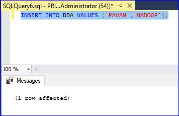 INSERT INTO DBA VALUES ('PAVAN','HADOOP');