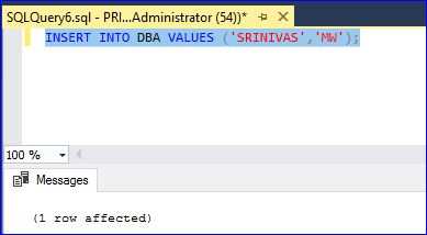 INSERT INTO DBA VALUES ('SRINIVAS','DBA');
