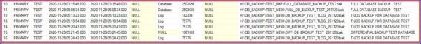--Check Contents - Full Backup RESTORE HEADERONLY FROM DISK = 'H:\DB_BACKUP\TEST_NEW\FULL_DB_BACKUP_TEST_261120.bak'; --Check Contents - Diff Backup RESTORE HEADERONLY FROM DISK = 'H:\DB_BACKUP\TEST_NEW\DIFF_DB_BACKUP_TEST_261120.bak'; --Check Contents - T-LOG Backup RESTORE HEADERONLY FROM DISK = 'H:\DB_BACKUP\TEST_NEW\DB_BACKUP_TEST_TLOG_261120.bak';![]()