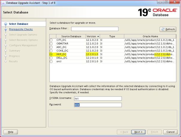 Hostname : RAC1.DBA Learning Hub.COM Database Name : HKP DB VERSION : 12.2.0.1 DB Home Path : /u01/app/oracle/product/12.2.0/dbhome_1 Datafile Location : /u01/app/oracle/oradata/HKP Target DB VERSION : 19c Target DB Path : /u01/app/oracle/product/19.0.0/dbhome_1