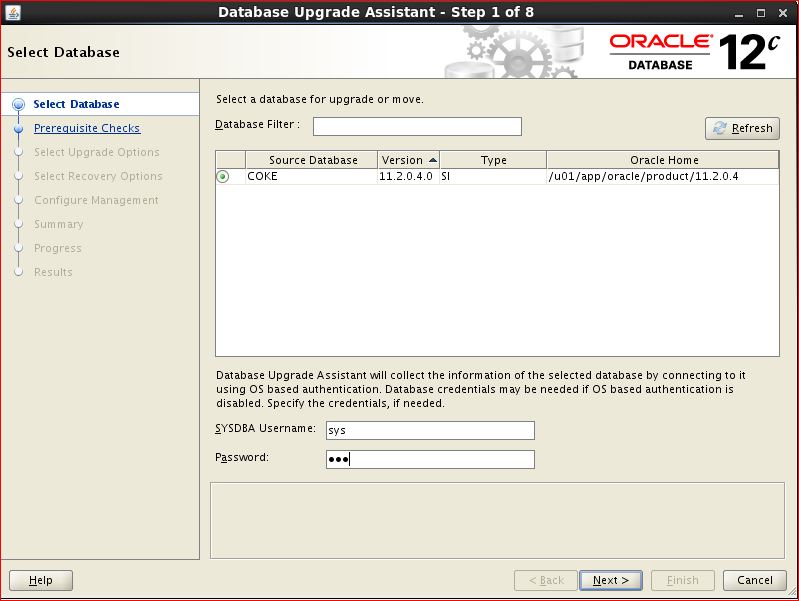 Hostname : RAC2.DBA Learning Hub.COM Database Name : COKE DB VERSION : 11.2.0.4.0 DB Home Path : /u01/app/oracle/product/11.2.0.4 Datafile Location : /u02/oradata/coke Target DB VERSION : 12.2.0.1 Target DB Path : /u01/app/oracle/product/12.2.0.1 Upgrade Method : Database Upgrade Assistant